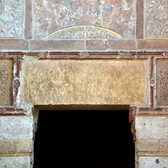 Lunetteالنفيس / طبلة العقد[As used here]: The space between a LINTEL and the SEGMENTAL RELIEVING ARCH above it. It is often filled with decorative patterns, and in MAMLUK and Ottoman-period Cairo with glazed wall-tiles | Lunette | النفيس / طبلة العقد | [As used here]: The space between a LINTEL and the SEGMENTAL RELIEVING ARCH above it. It is often filled with decorative patterns, and in MAMLUK and Ottoman-period Cairo with glazed wall-tiles |