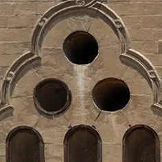OculusعينOculus (pl. oculi): a round window. In MAMLUK architecture, oculi are often grouped over windows topped with semicircular arches in a triangular one-over two- over three pattern | Oculus | عين | Oculus (pl. oculi): a round window. In MAMLUK architecture, oculi are often grouped over windows topped with semicircular arches in a triangular one-over two- over three pattern |