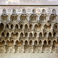MuqarnasمقرنصMuqarnas (Ar): ornamental arrangement of multi-tiered niches widely used in Islamic art and architecture. More elaborate versions can be of “stalactite” form. In Mamuk-period buildings they typically decorate SQUINCHES under domes, wall niches, and portal | Muqarnas | مقرنص | Muqarnas (Ar): ornamental arrangement of multi-tiered niches widely used in Islamic art and architecture. More elaborate versions can be of “stalactite” form. In Mamuk-period buildings they typically decorate SQUINCHES under domes, wall niches, and portal |