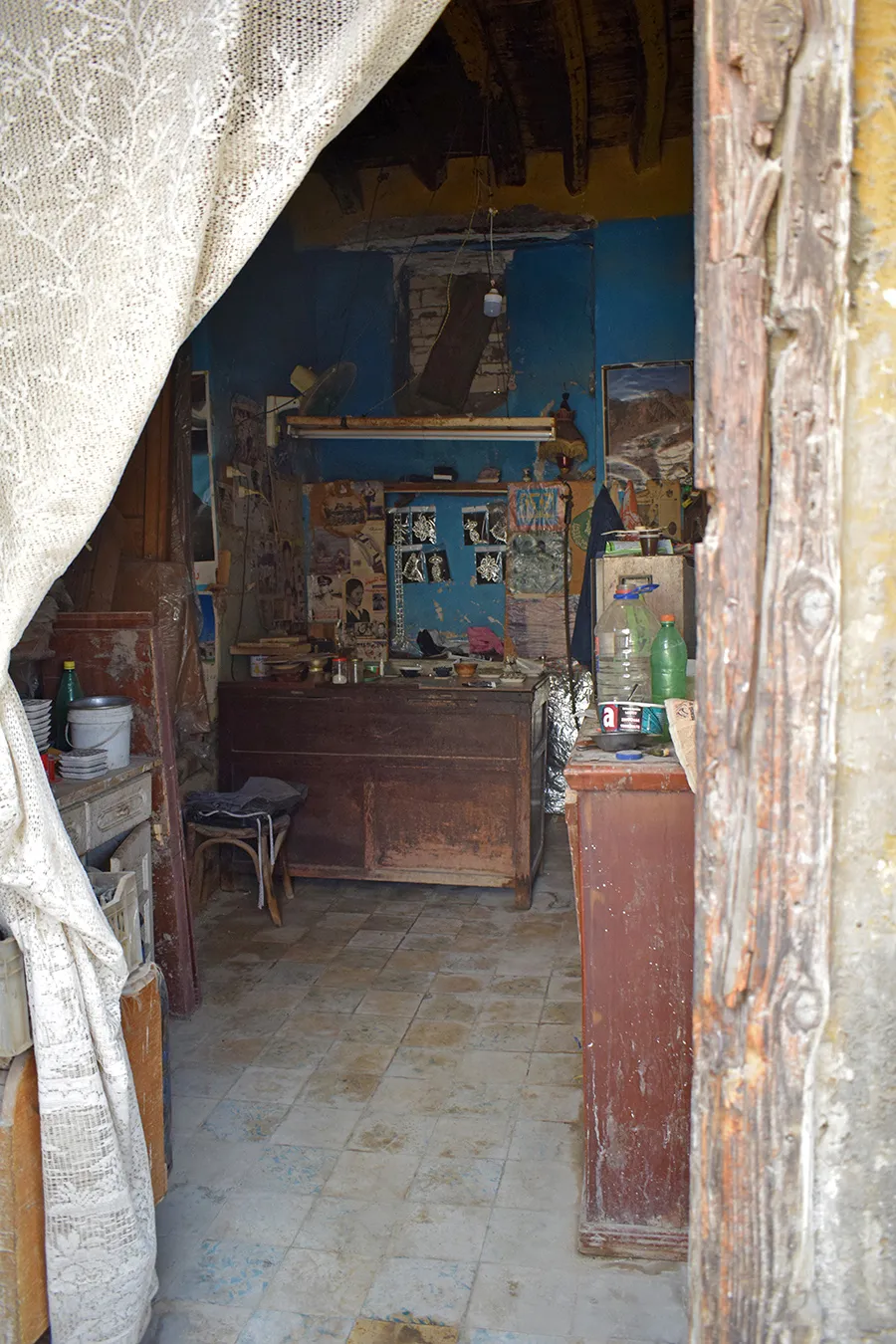 The enclosure is both inhabited and used as a burial place, so it receives rudimentary maintenance. However, it is largely derelict, with damaged and incomplete woodwork, peeling plaster, and damage from rising damp and from rainwater. The arched canopy in the courtyard is walled up.