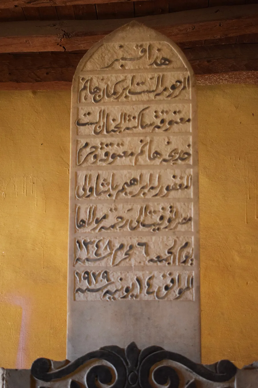 A shahid stela stored in the eastern burial chamber and dated to AH 1282(?) [=AD 1865] also commemorates a woman whose husband was in the service of Ibrahim Pasha.