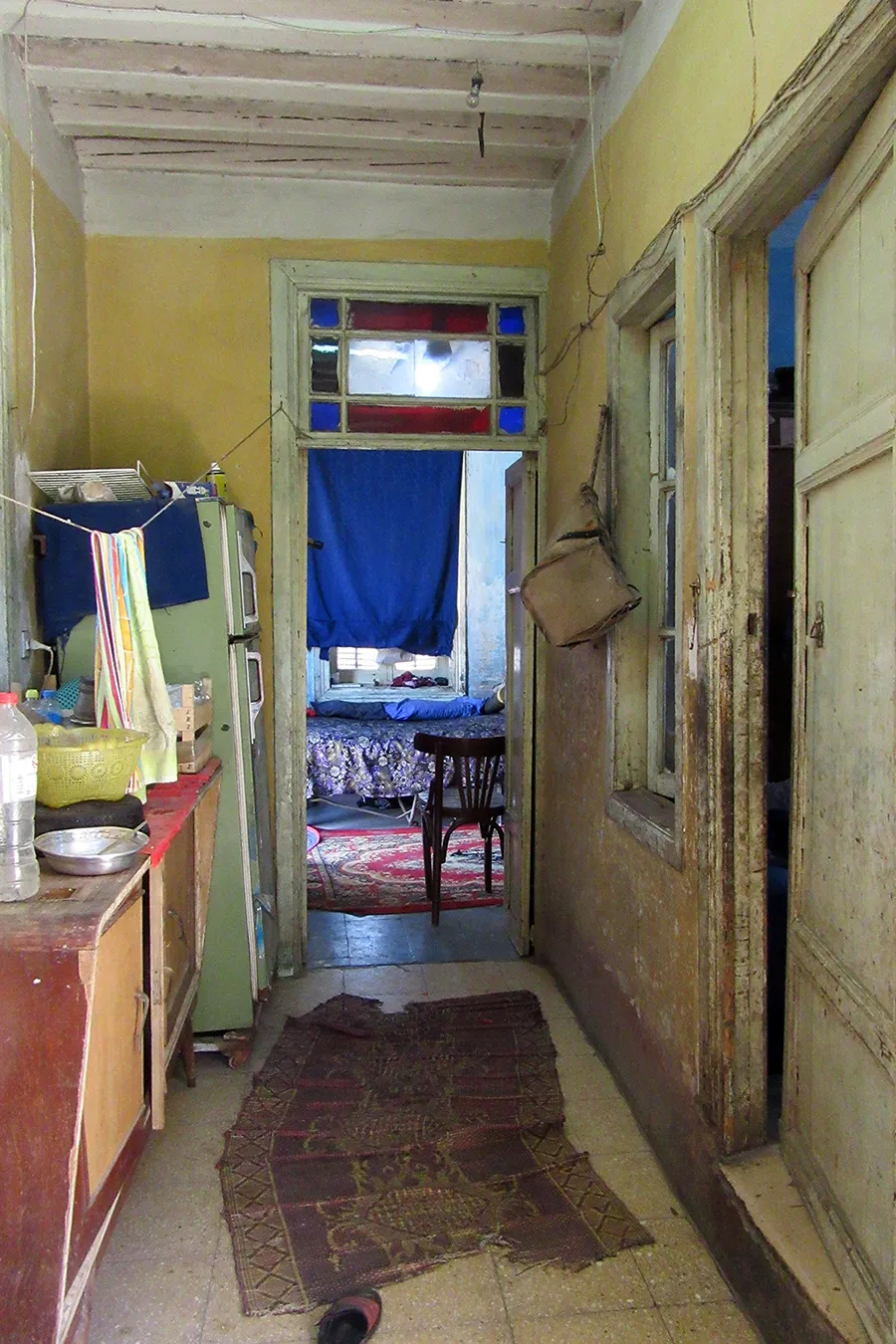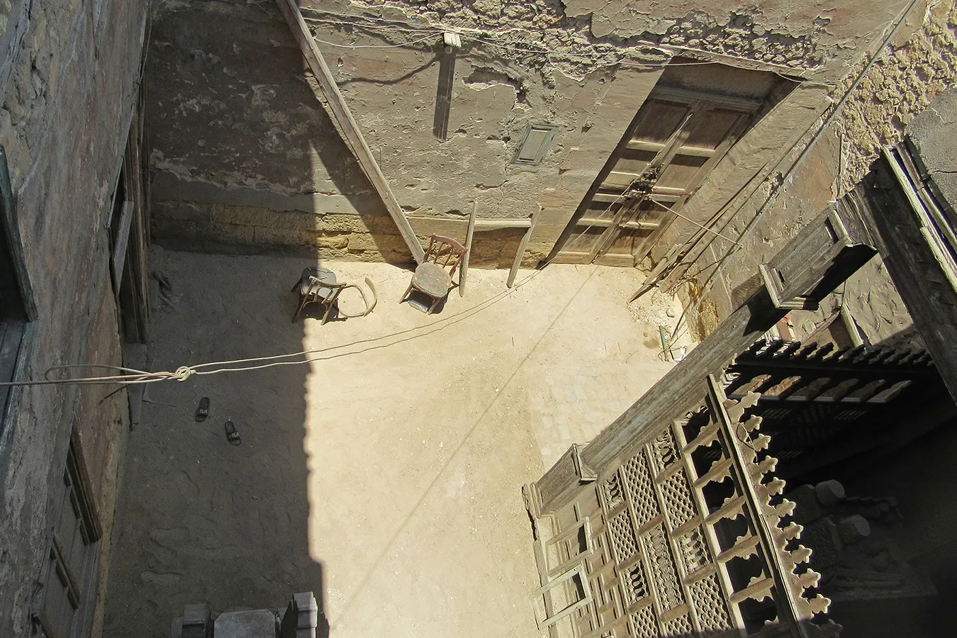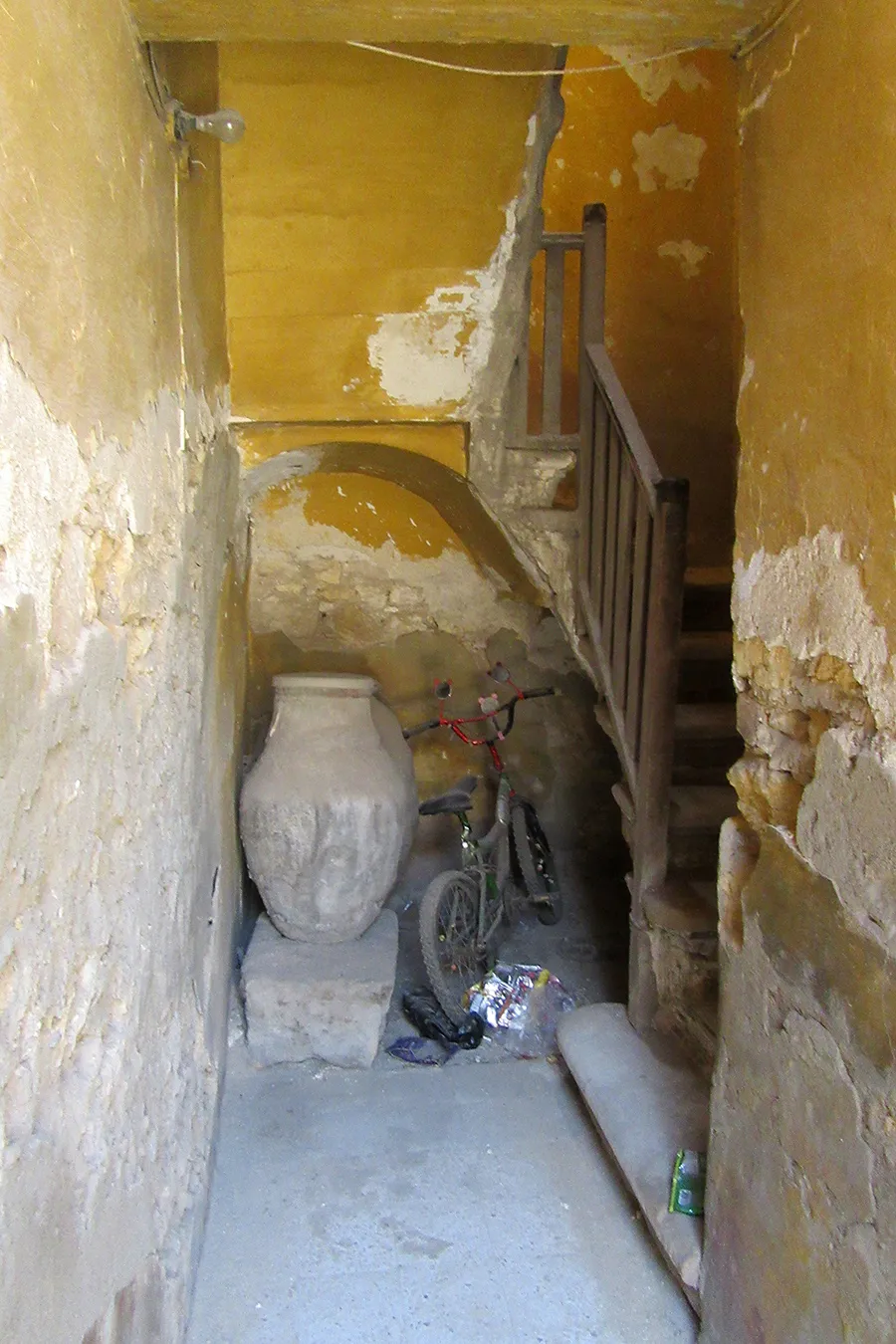 The two-story building to the south of the courtyard is accessed from a doorway in the western part of the façade, leading into a staircase. A mezzanine of two small low-ceiling storage rooms is accessed from the staircase landing. The upper floor is a residential apartment consisting of a kitchen, a toilet and a bedroom with a doorway leading into a spacious roof overlooking the courtyard.