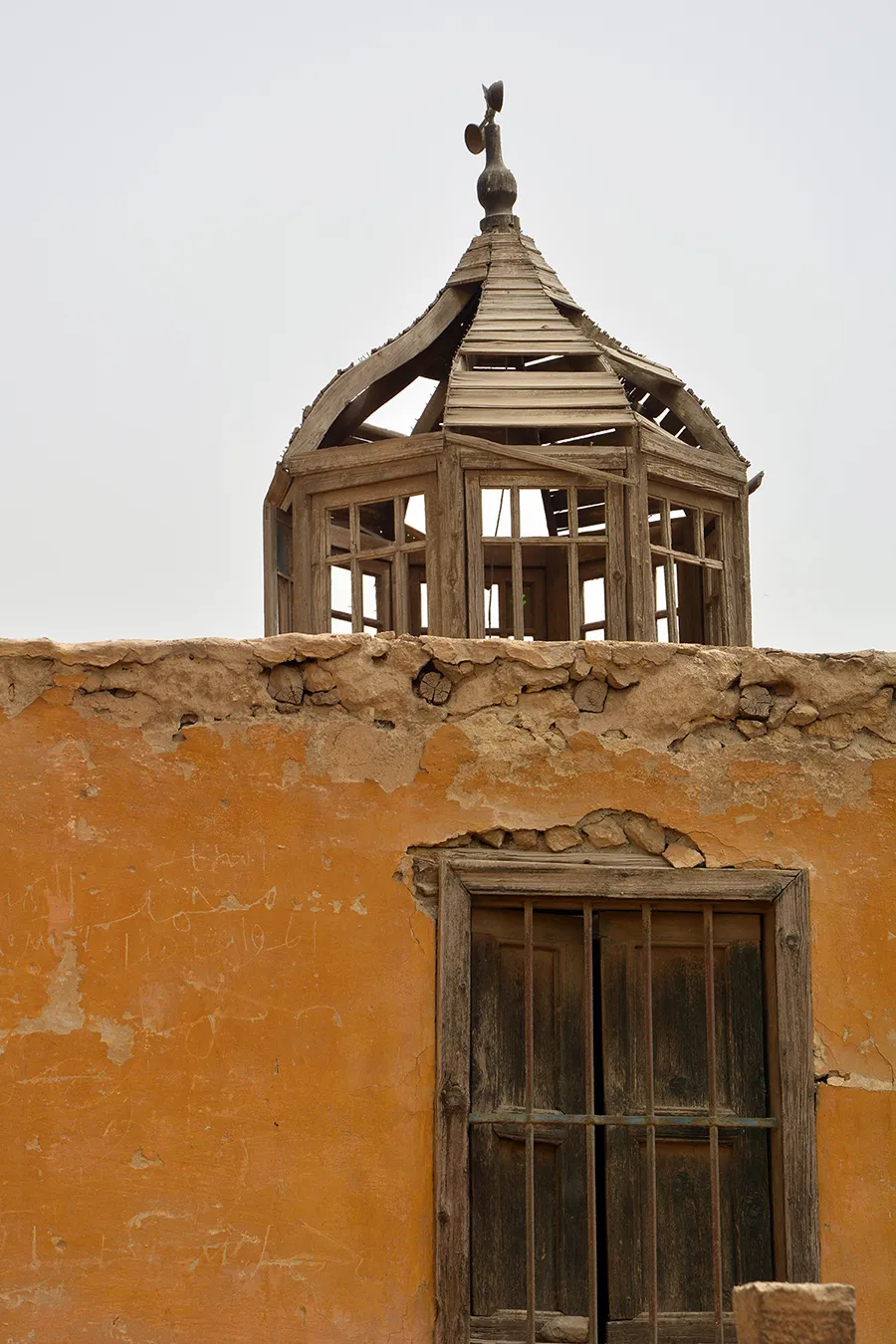 The chamber is covered with a wooden roof with a simple octagonal lantern covered by a small wooden dome.