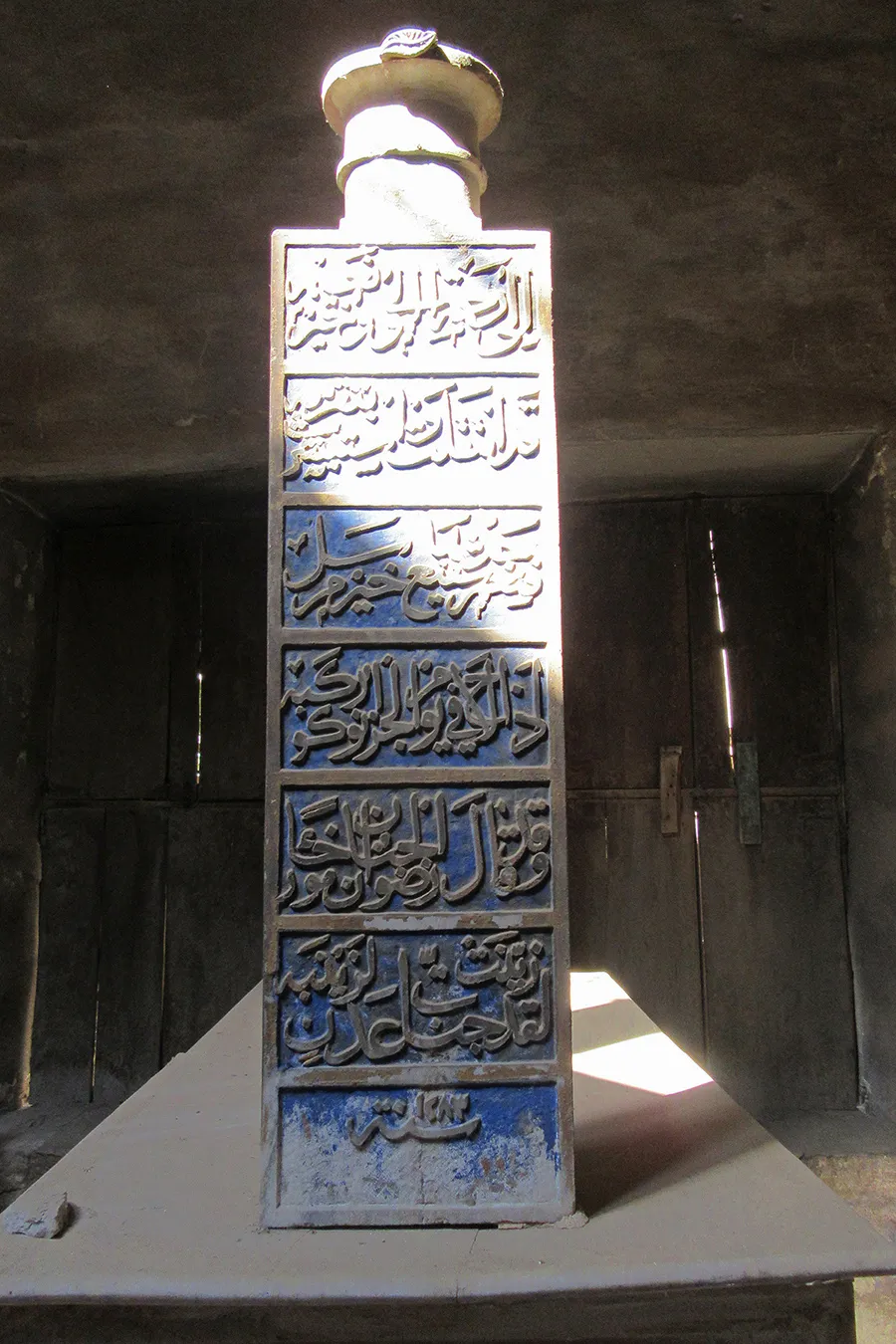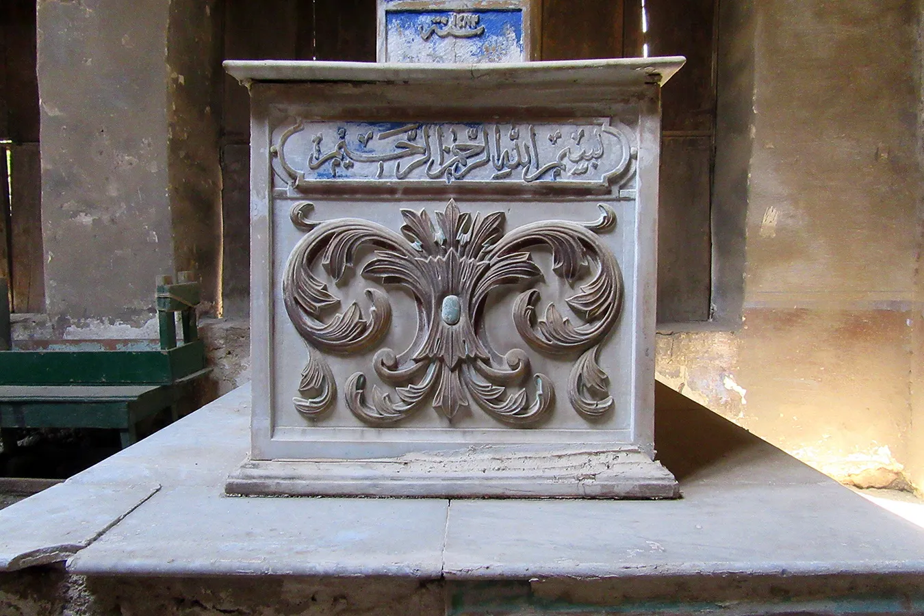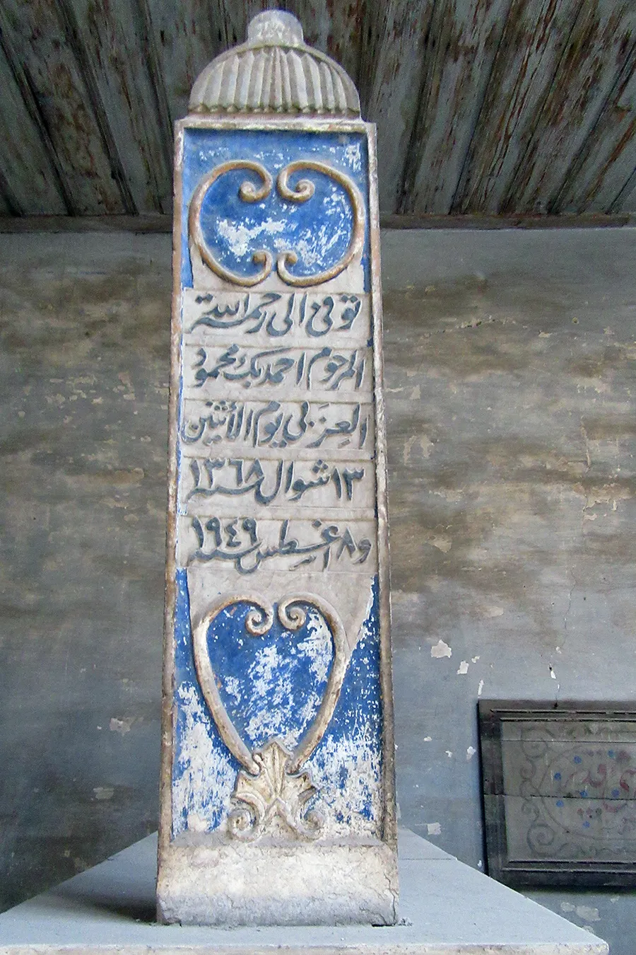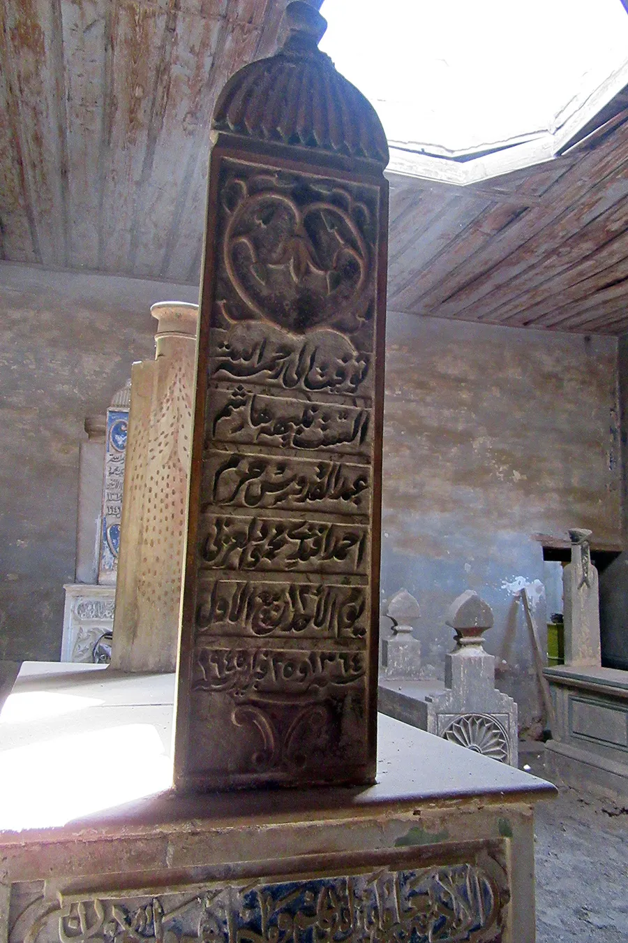 The date AH 1283, which is the earliest found on tomb markers, corresponds to AD 1866. The form of a cavetto cornice transitioning in curves between different levels is a feature commonly found in Muhammad ‘Ali’s buildings at the Citadel dating to the first half of the 19th century, and common in Cairo at the time. This may hint at a date in the first half of the 19th century for the oldest parts of the al-‘Azabi complex.