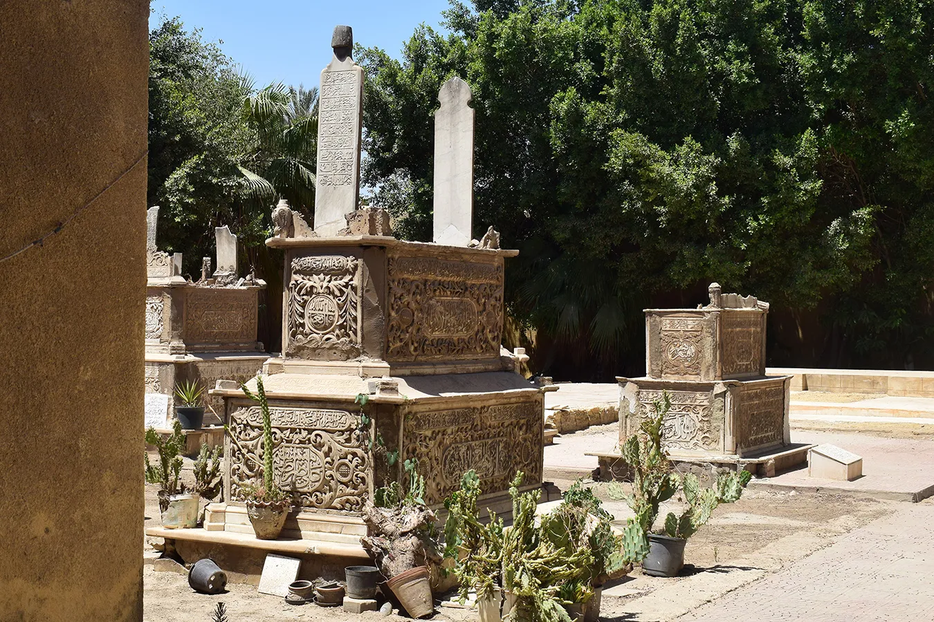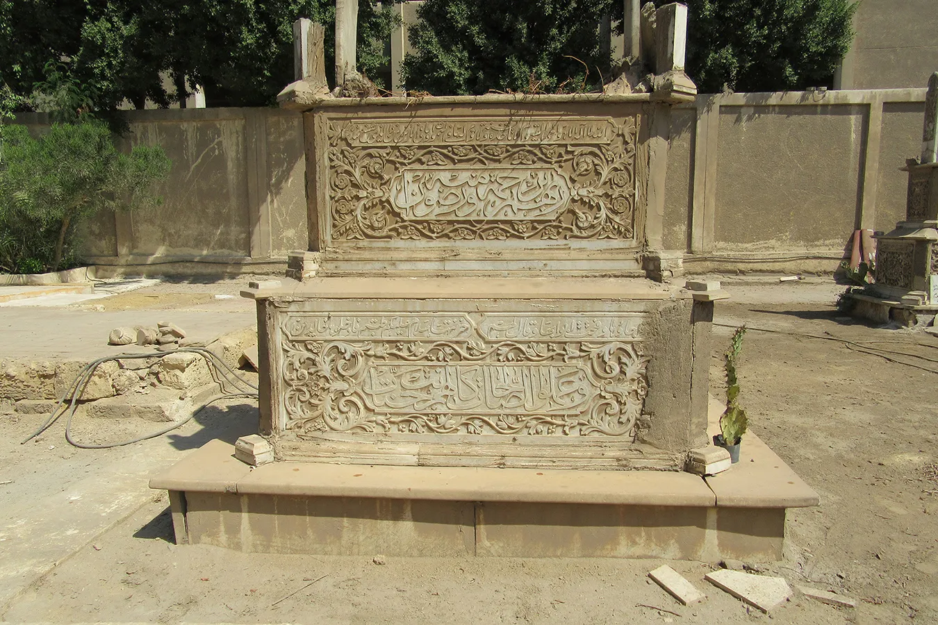Al-Husseni Family is a garden-layout walled enclosure. The main undecorated arched gate with modern steel door-leaves is located on the southern (right) end of the southern side and placed in a section of the wall higher than the rest of the perimeter wall. A similar gate, now unused, is placed on the opposite side, in the northern end of the north-eastern wall. The spacious courtyard includes four richly decorated marble cenotaphs and five limestone tomb markers, where the oldest tomb marker dates back to 1323 Hijri. The doorway leads into a paved unshaded pathway, giving access to an open-fronted seating area by the southern perimeter wall, shaded by a timber roof supported on two slender wooden pillars, and two rooms accessible from the courtyard that are located in the south-western corner of the enclosure.