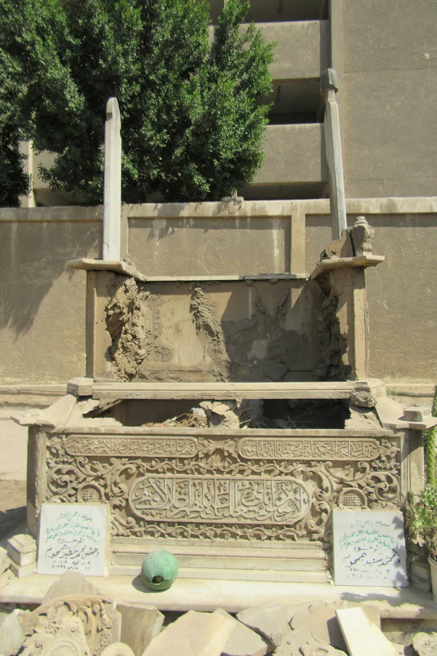 In the past, the enclosure was built over a larger area before the donation of a part of the plot to the al-Azhar foundation by the family. (According to a phone interview with a family member of the owners.)