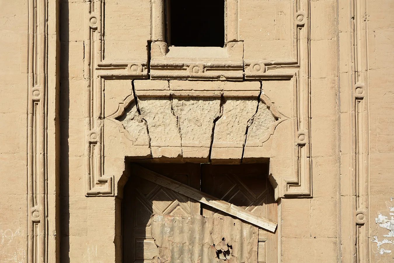 The building is disused and dilapidated. Most of the plaster is missing from the façades. There is serious damage to the lower parts of the walls from rising damp. The burial chamber is roofless, scant remains of the roof with a lantern remain. There are wide cracks in the northern part of the eastern façade, indicating differential settlement of foundations, which compromises structural safety, although the building is not yet in danger of imminent collapse.