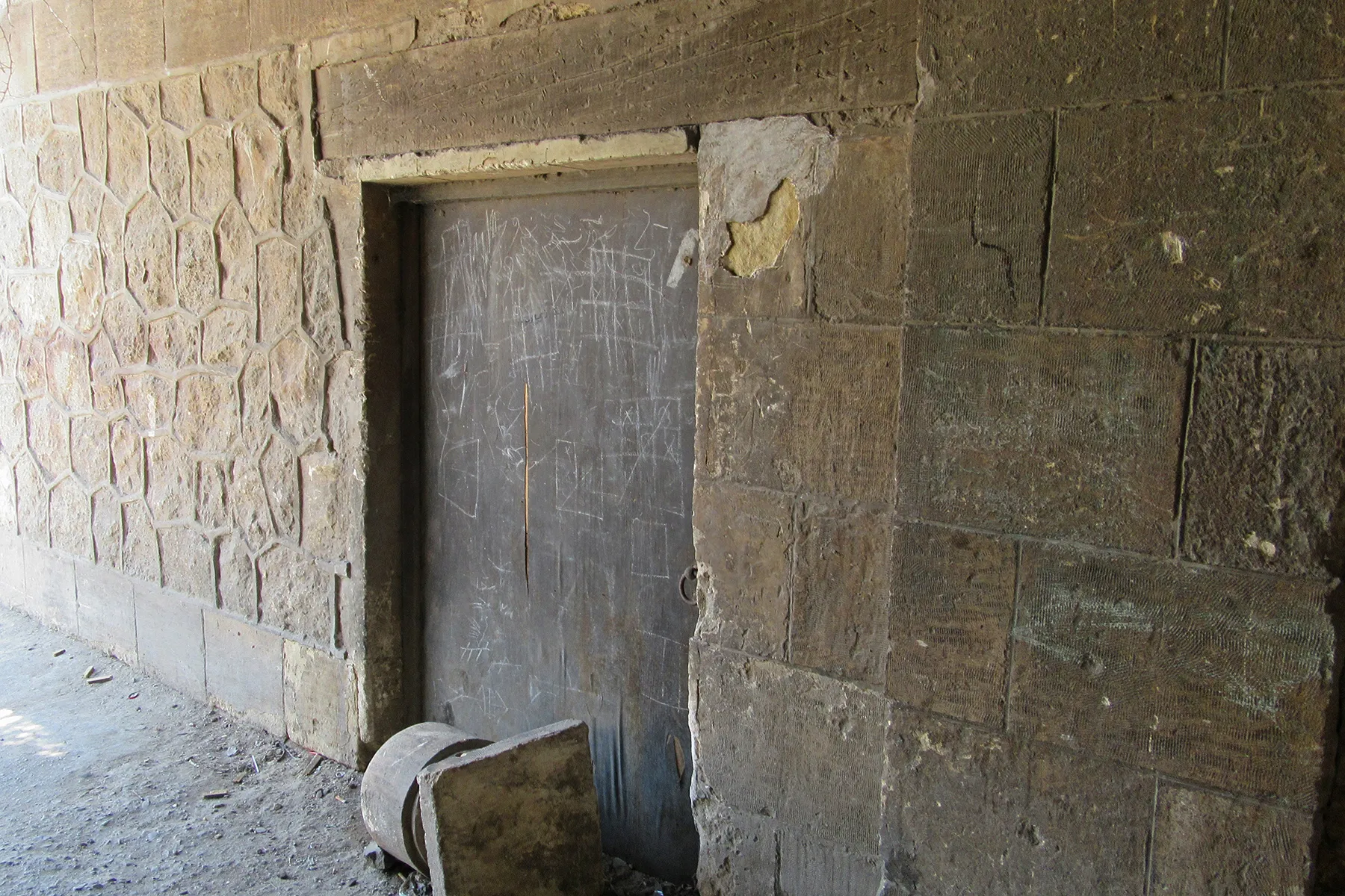 • Uncoursed rough stone masonry used in the façade of the perimeter wall.