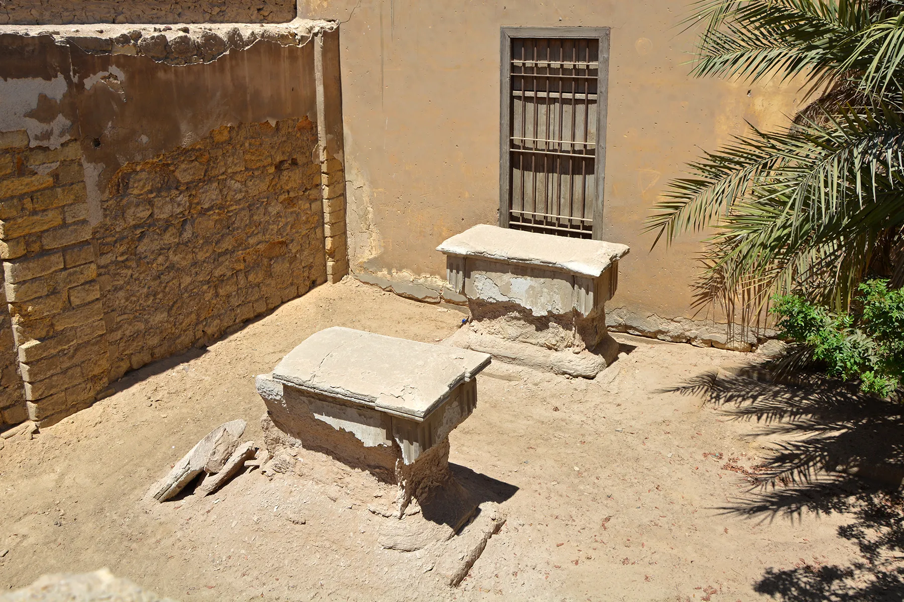 In the south-eastern courtyard stand two badly damaged simple uninscribed tomb markers of classical-based forms clad in marble. Possibly a carved marble cenotaph stands in the north-western corner of the enclosure.