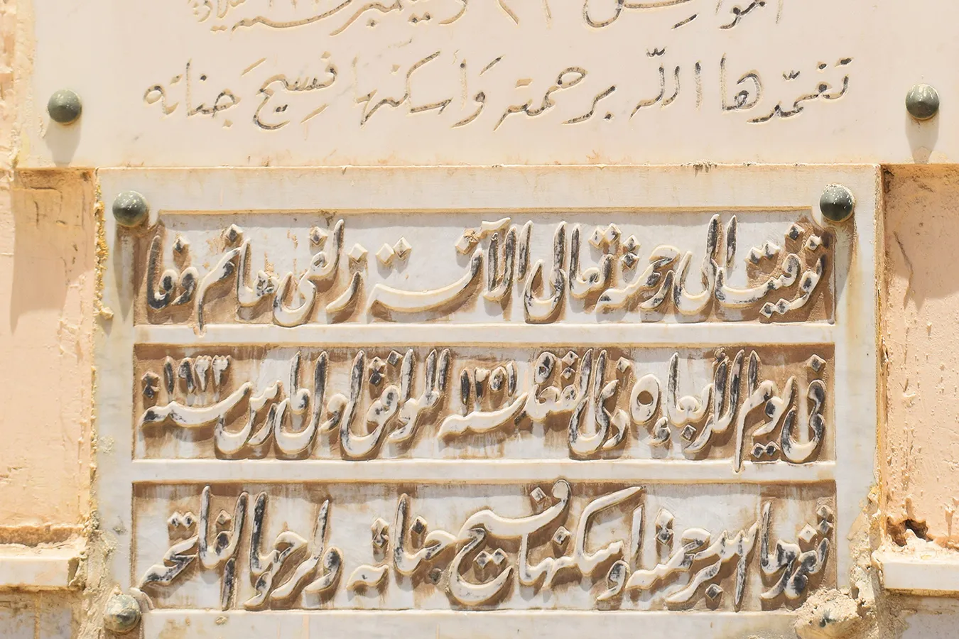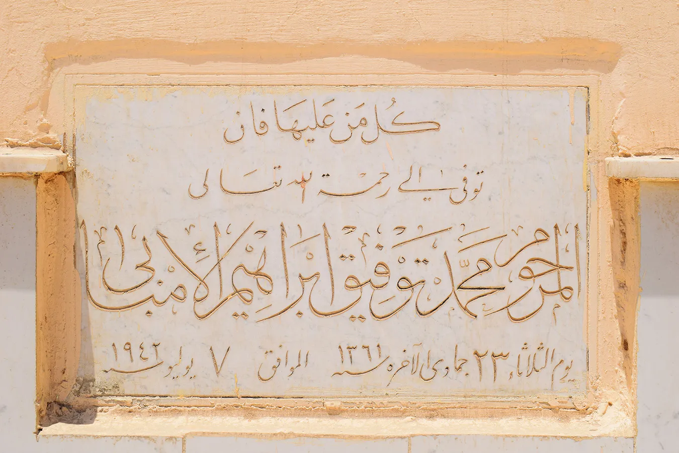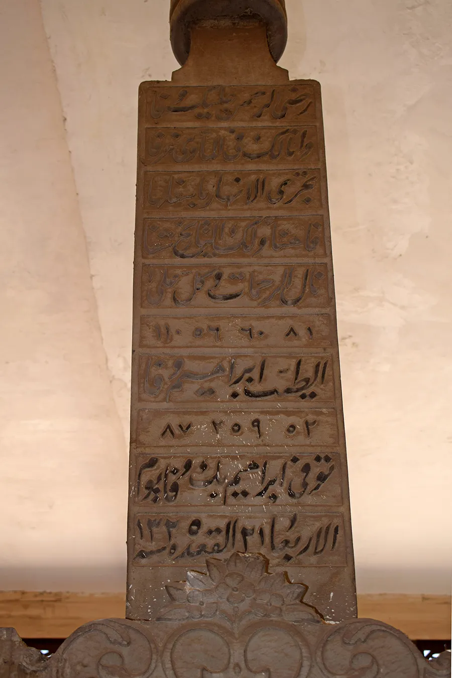 The ealiest date on a marble cenotaph is AH 1321 and corresponds to AD 1903.