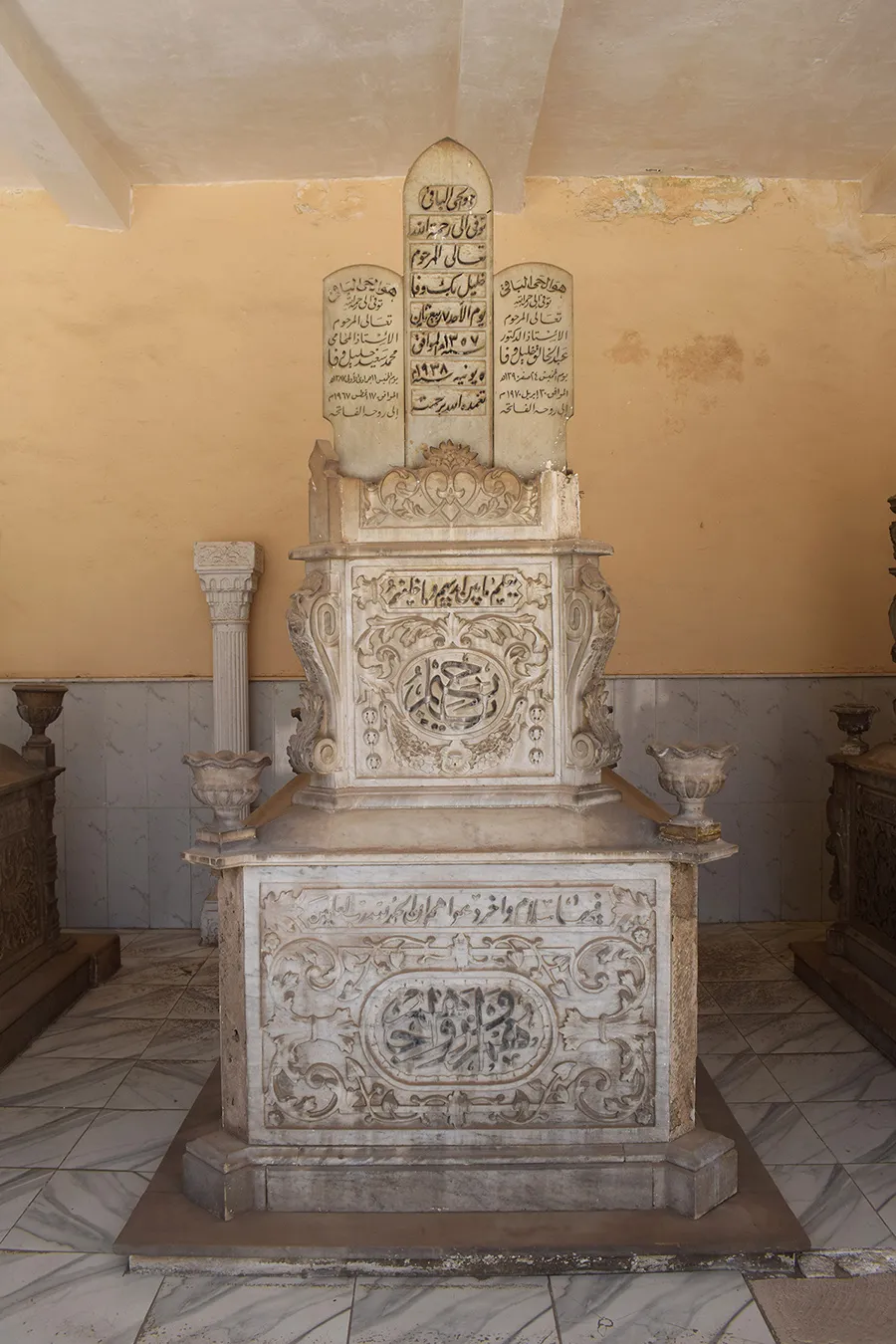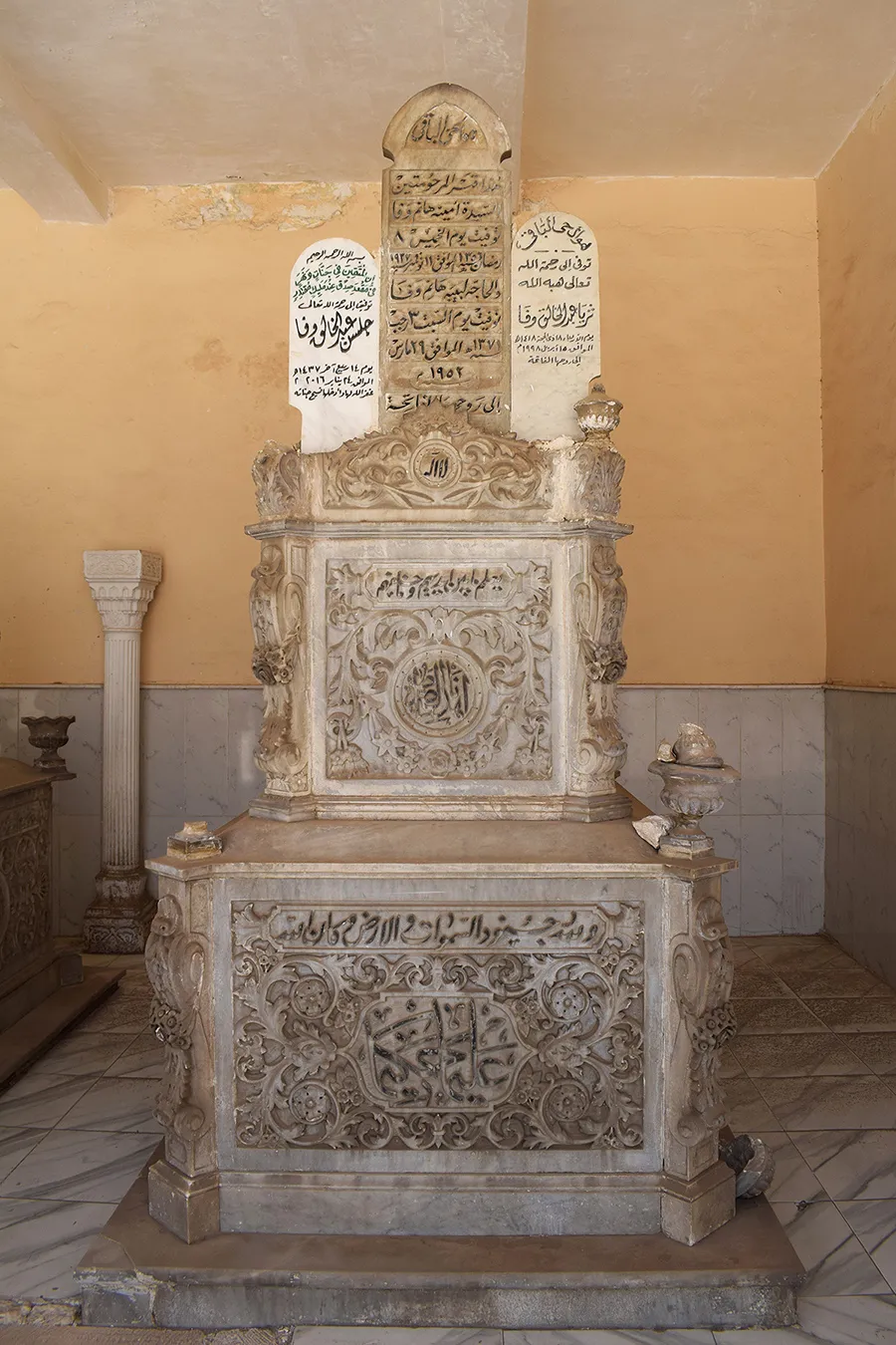 | Carved marble cenotaph(s) | Yes | 3 | 3 | 3 old richly decorated cenotaphs, 2 simpler, newer ones |