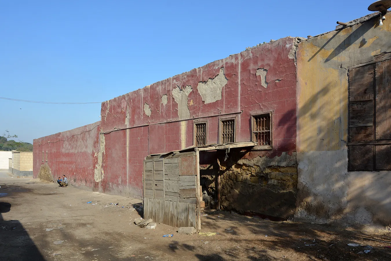 The building was repainted some years ago, and apparently the roof cover was repaired, as new rain pipes were installed. However, it is in poor overall condition, with severe damage from rising damp to the lower parts of the walls. Woodwork is damaged and desiccated.